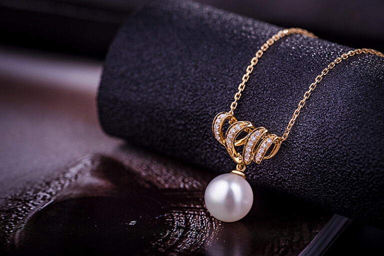 18K Gold Infinity Necklace Pendants with Akoyo Pearl and Diamond