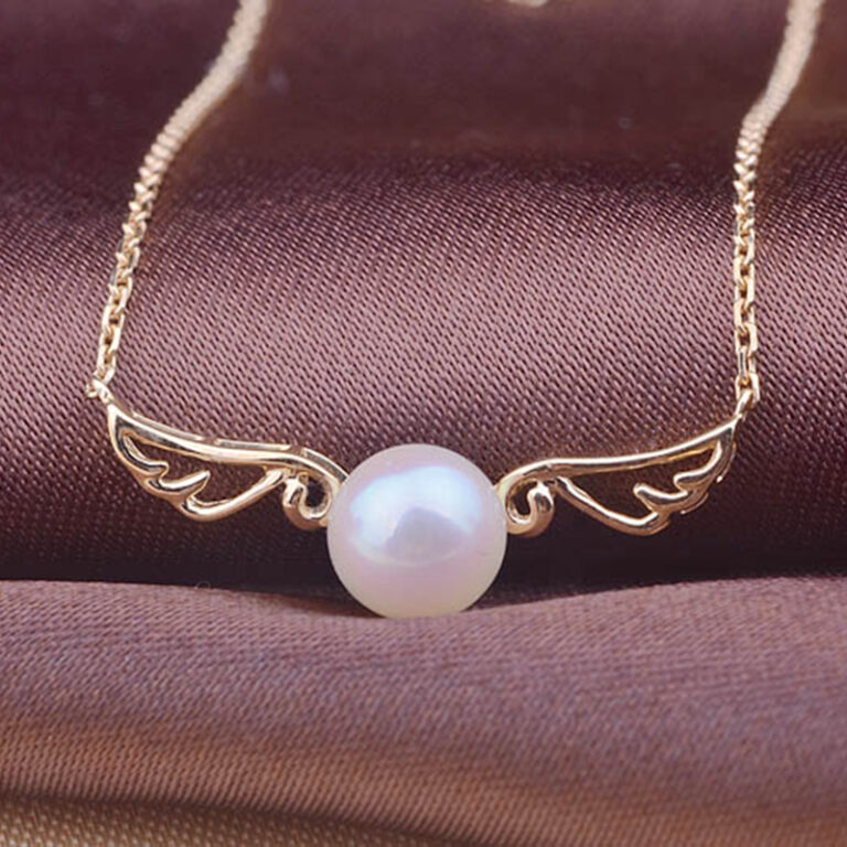 14K Yellow Gold Angle Wing Necklace with Akoyo Pearl