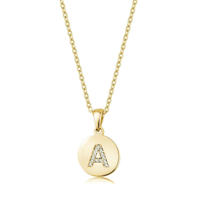 18K Yellow Gold Alpha A Letter Necklace with Diamond