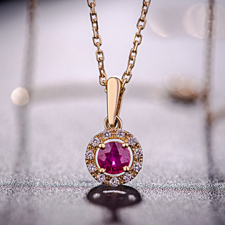 18K Yellow Gold Diamond Necklace Pendants with Ruby Gemstone