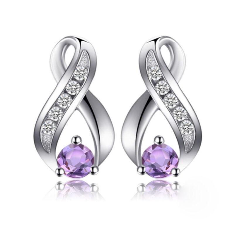 Infinity 925 Silver Earrings with Amethyst Natural Crystal