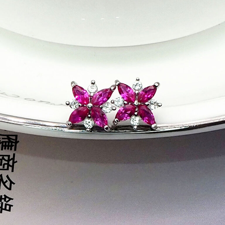 S925 Silver Four Leaves Flower Earrings Ruby CZ AAA grade Stone