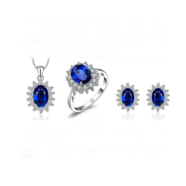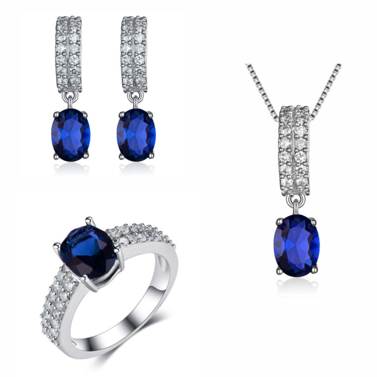 S925 Silver Jewelry Set with Oval Shape Sapphire Stone Color