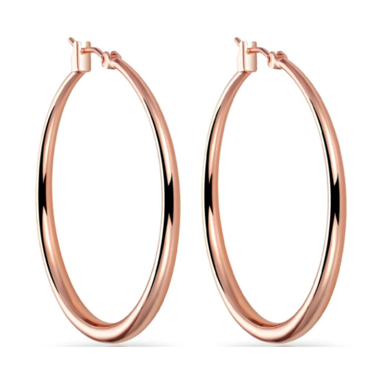 Fashion Style Solid 925 Silver Earring Hoops with Rose Gold Plated