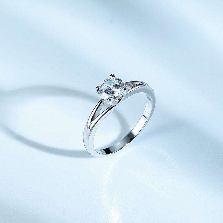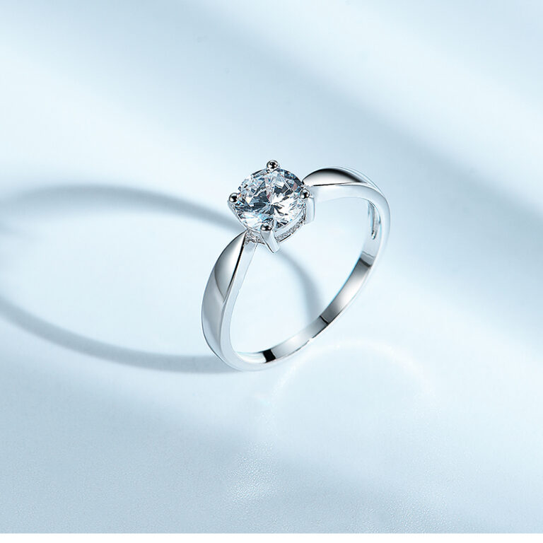 S925 Silver Rings Clear Stone White Gold Plating