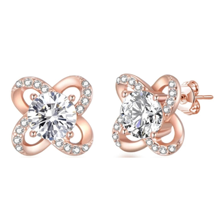 Fashion Rose Gold Plated 925 Silver Flower Earring Studs Jewelry
