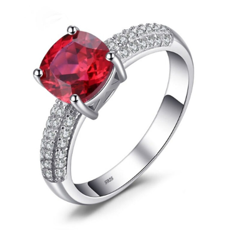 S925 Silver Rings with Ruby Color CZ Stone