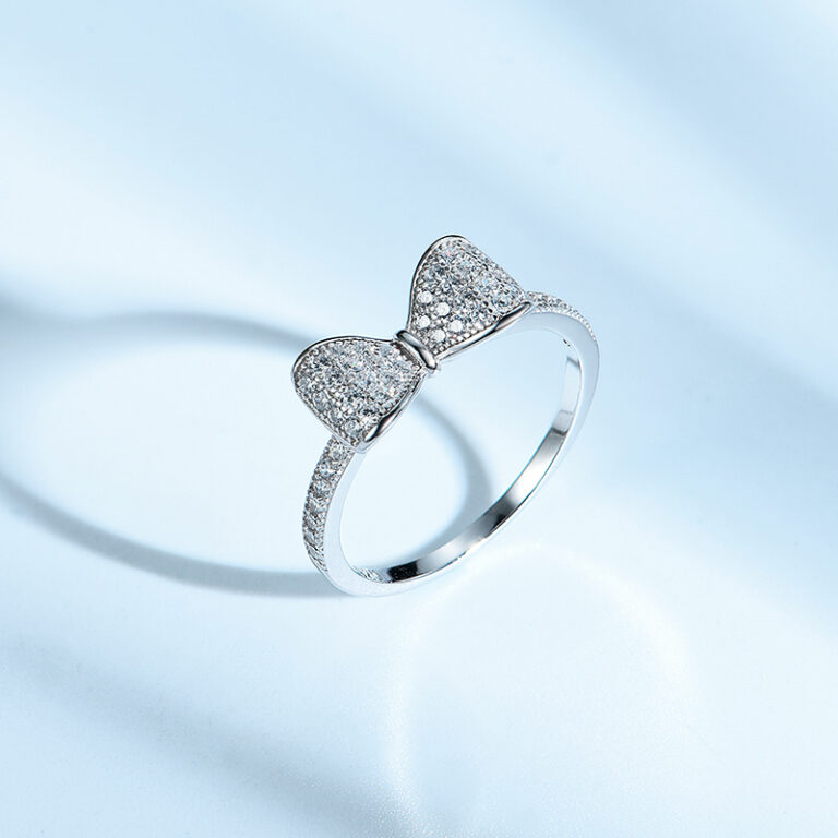 Bow Tie 925 Silver Rings with CZ Stone