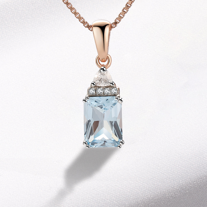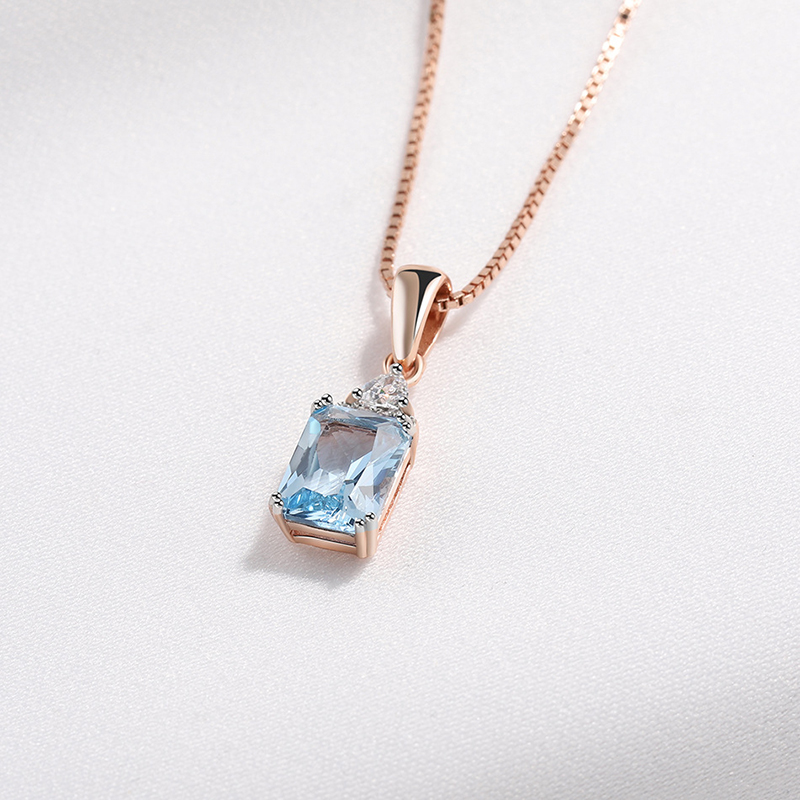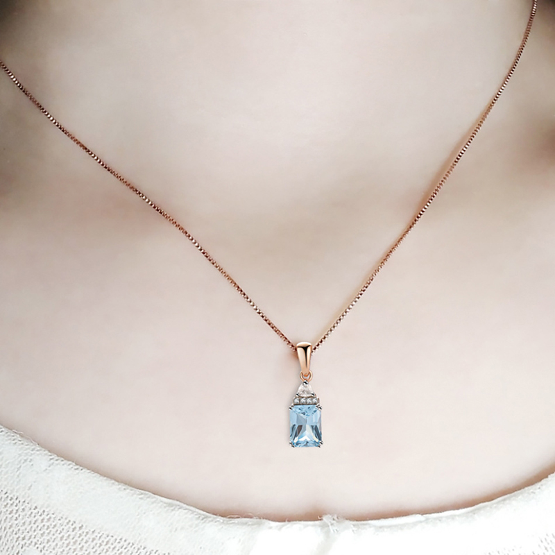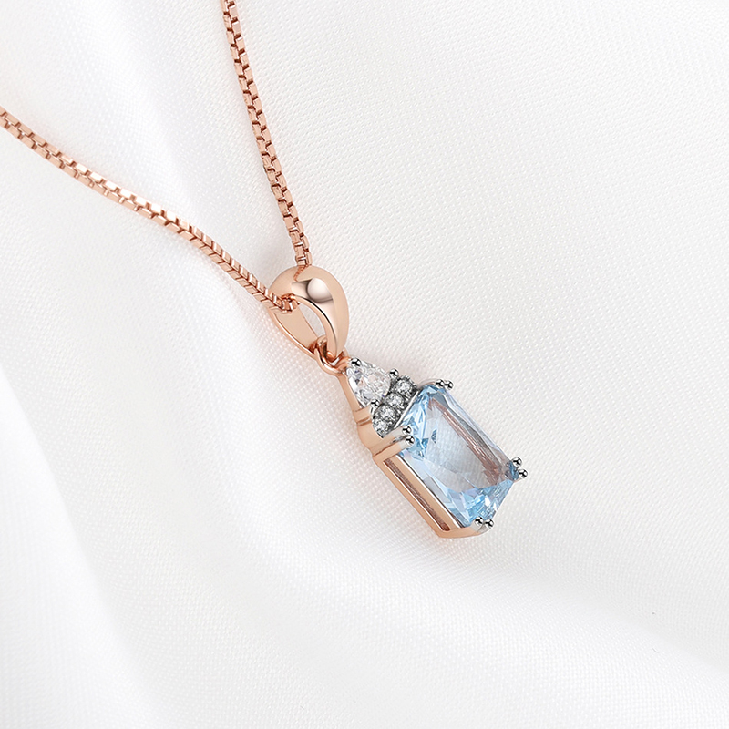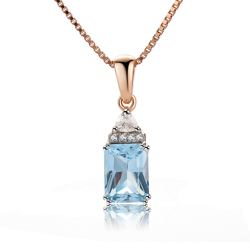 18K Rose Gold Plating 925 Silver Necklace Pendants with Sky Blue Topaz