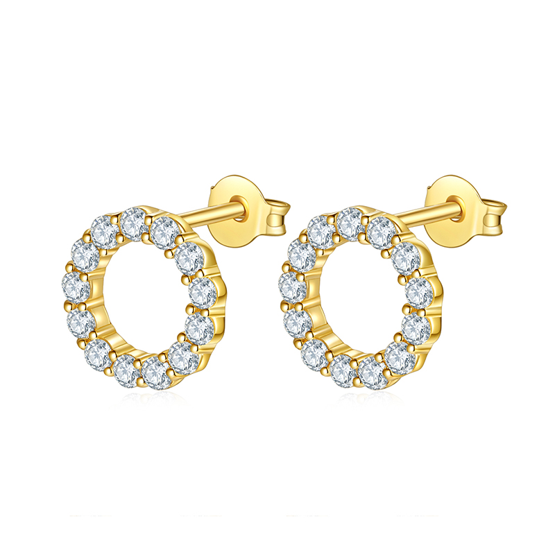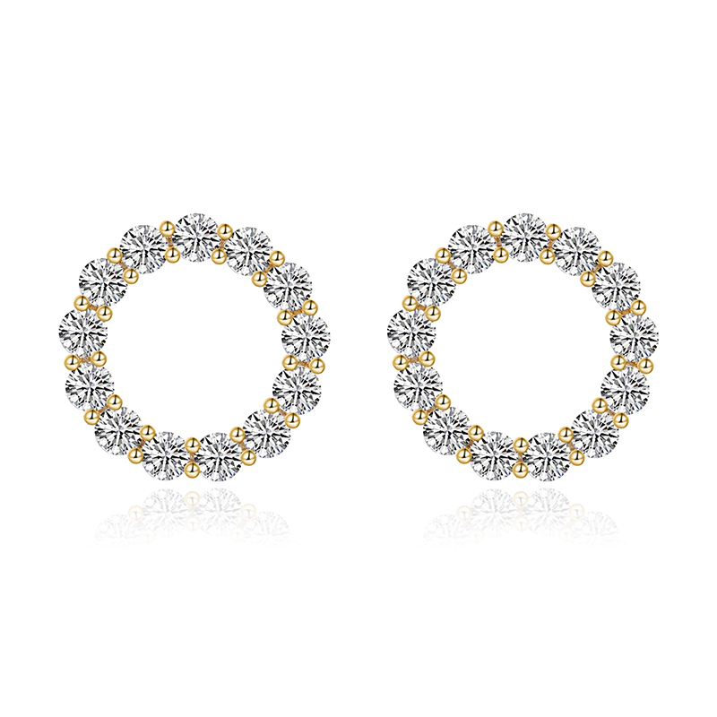 18K Yellow Gold Circle Earrings Studs with White Diamond