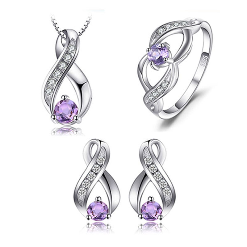 S925 Silver Necklace Pendants with Natural Amethyst Crystal