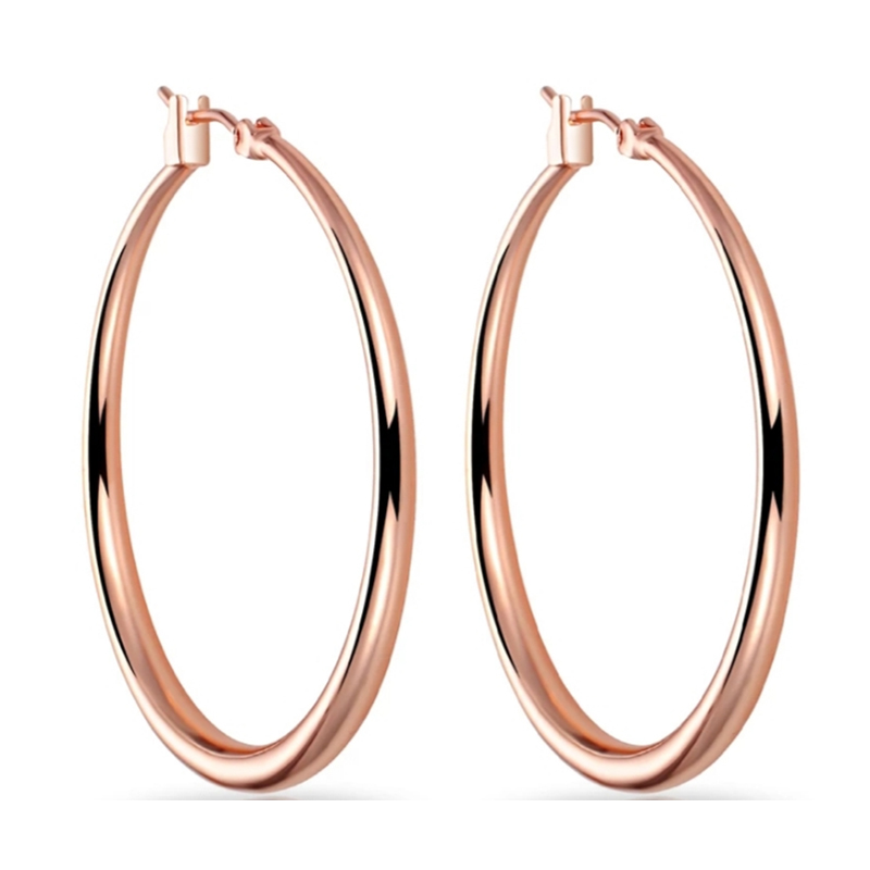 Fashion Style Solid 925 Silver Earring Hoops with Rose Gold Plated