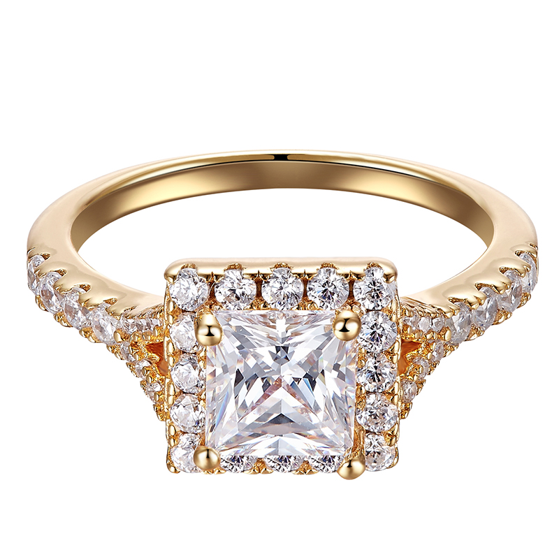 18K Yellow Gold Princess Diamond Engagement Ring Jewelry