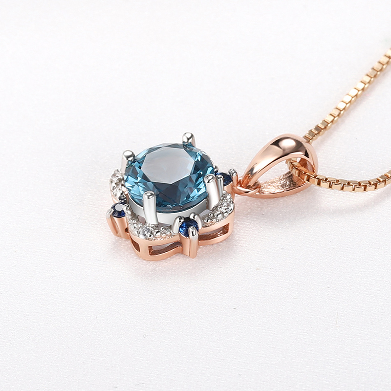 Rose Gold Plating Fashion Jewelry 925 Silver Necklace London Blue Topaz